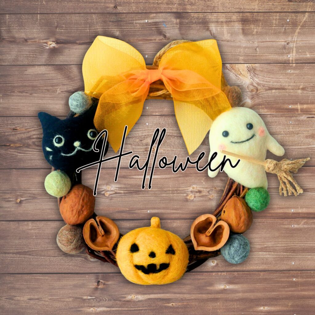 羊毛以外のパーツはお好きなものをぜひ揃えていただいて(今なら100均や手芸店などにもハロウィンの雑貨や材料がたくさん揃っています!)ぜひあなただけのハロウィンリースをつくって楽しんでくださいね。
