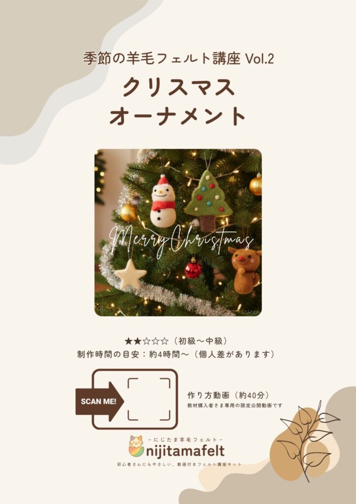 🎄季節の羊毛フェルト講座 Vol.2|クリスマスオーナメント
