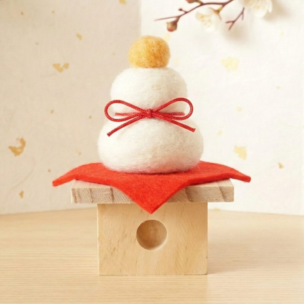 羊毛フェルトの鏡餅は、出しておいても ころん と可愛く、しまう時もとても軽くて場所を取りません。