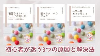雑記・コラム 羊毛フェルト初心者が迷う3つの原因と解決法|基礎を整理しました 羊毛フェルト初心者が迷いやすい3つの原因とその解決法を解説。かたさの目安、表面の整え方、形づくりの考え方まで基礎を整理しました。迷いを減らしたい方へ。 2026.02.25 雑記・コラム