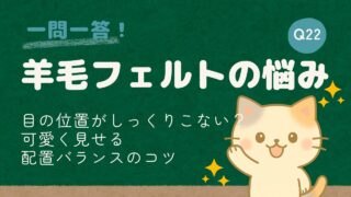 羊毛フェルトQ&A 目の位置が難しい?かわいく見える配置バランスのコツ 羊毛フェルトで「目の位置がしっくりこない」と感じたときに。左右の高さや間隔、上下のバランスを整えることで、自然で可愛い表情に仕上げるコツを紹介します。 2025.10.27 羊毛フェルトQ&A講座